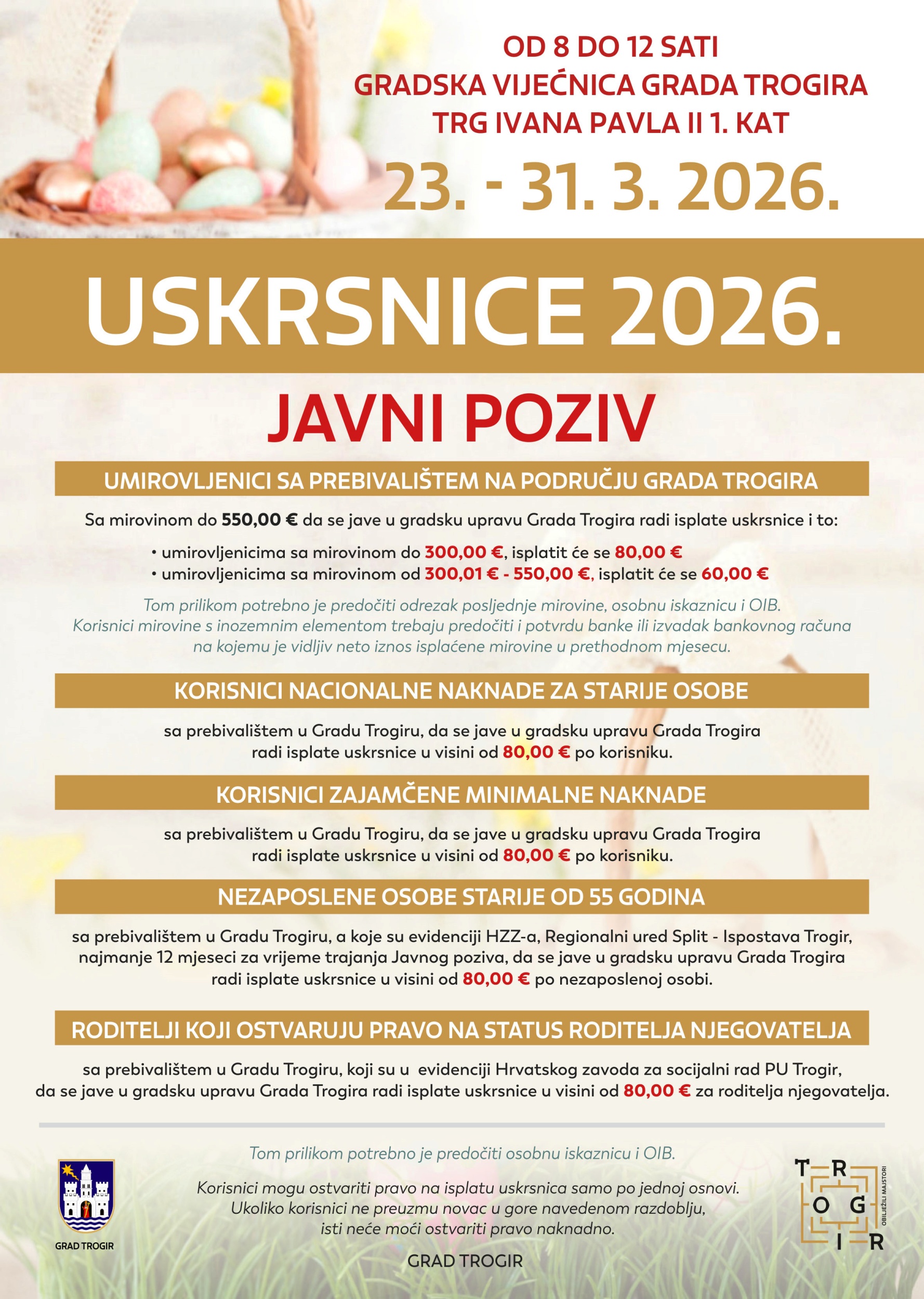 Home / Potpore/poticanja / Javni poziv – Uskrsnice 2026.
